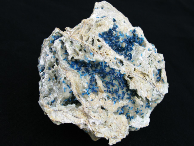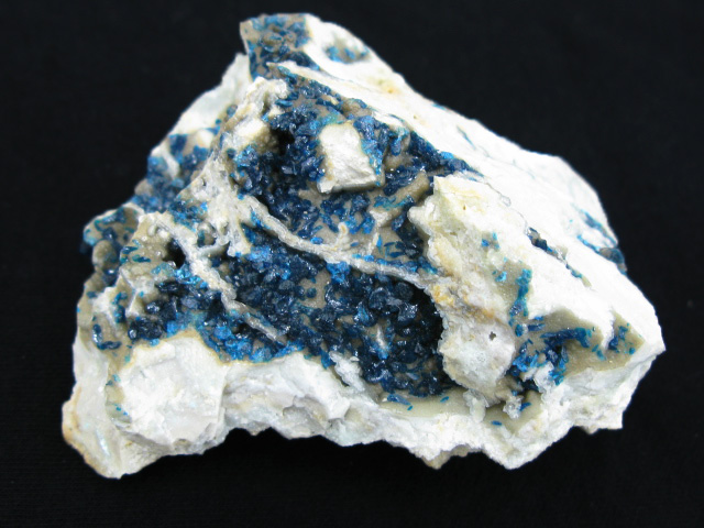 A great example of henmilite from a find made around 1994-95, I remember sitting at the computer as a broke 3rd grader reading about these on John Veevaert’s “Trinity Minerals” site marveling at the beautiful deep, inky purple blue on the contrasting white matrix. The story was that a local Japanese mineral club had stumbled upon them while on a collecting trip at a mine worked primarily for materials used in the manufacture of toothpaste.