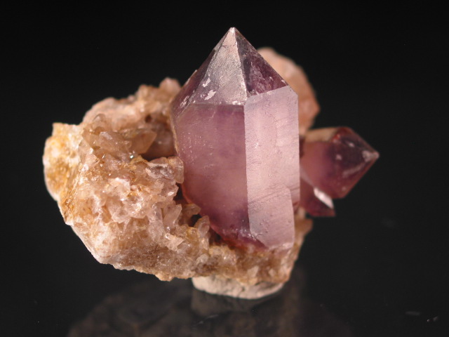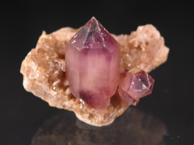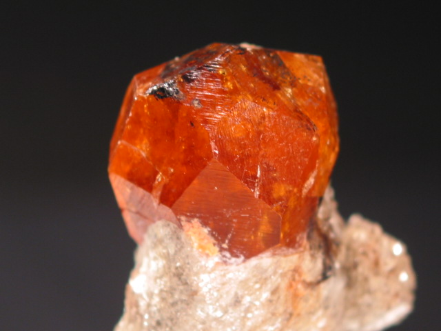 matrix. The crystal has etch patterns on its faces, giving it a very