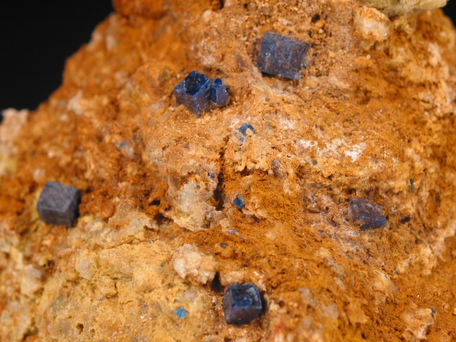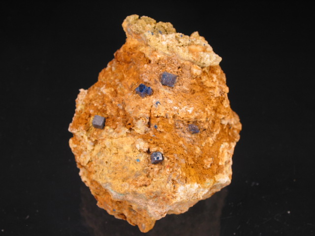 specimen has multiple sharp, deep blue crystals on a nicely contrasting
